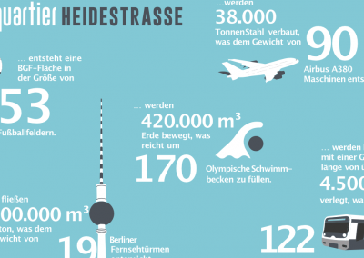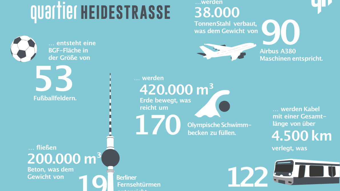 Mit dem Quartier Heidestrasse entsteht eine neu konzipierte und urbane Lebenswelt – ein Gebiet zum Wohnen, Einkaufen und Arbeiten. 175.000 Quadratmeter Gewerbe- und Einzelhandelsflächen werden errichtet. Für das große Nahversorgungszentrum QH Core mit Wohnungen und Büros wurde im September 2018 der Grundstein gelegt.