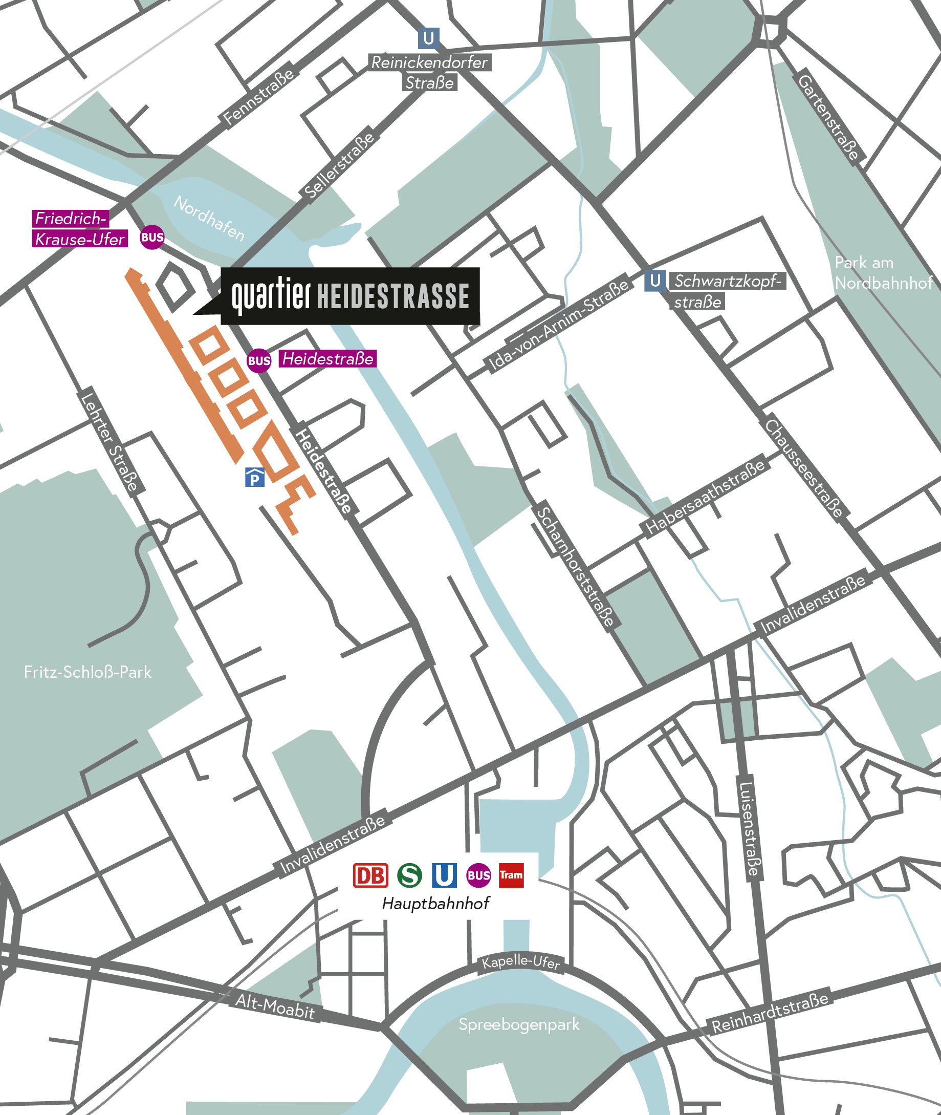 Mit dem Quartier Heidestrasse entsteht eine neu konzipierte und urbane Lebenswelt – ein Gebiet zum Wohnen, Einkaufen und Arbeiten. 175.000 Quadratmeter Gewerbe- und Einzelhandelsflächen werden errichtet. Für das große Nahversorgungszentrum QH Core mit Wohnungen und Büros wurde im September 2018 der Grundstein gelegt.